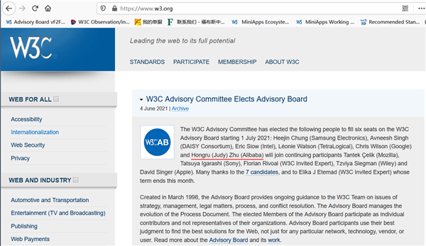 阿里四次連任全球權威Web技術標準組織董事會成員