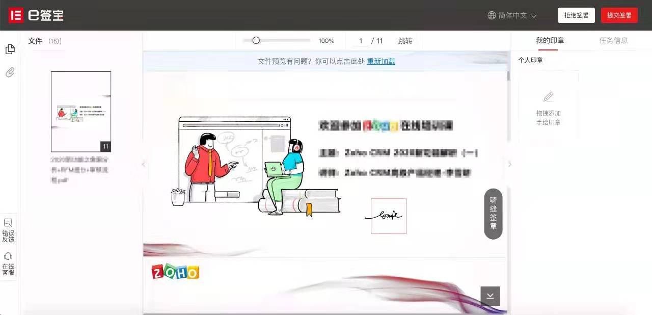 Zoho CRM與e籤寶集成 優化線上簽約過程