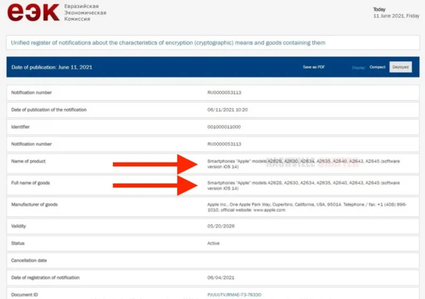 根據此前多方預測的消息,今年蘋果將繼續在9月推出全新的iPhone 13系列機型(也有消息稱為iPhone 12s系列),按照往年慣例,今年的新iPhone的升級可能並不會太大,但依舊吸引了大家關注的目光。現在有最新消息,近日有外媒發佈信息稱,iPhone 13系列機型的認證信息已出現在歐亞經濟委員會(EEC)數據庫中。