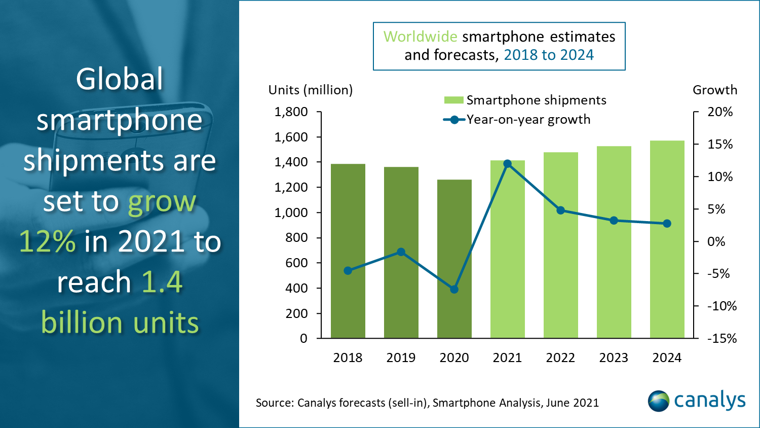 Canalys預測2021年全球智能機出貨量仍會增長12%