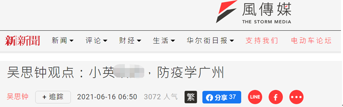 對於廣州成功防控的經驗,台商吳思鍾看在眼裏,他在台媒“風傳媒”發文向蔡英文喊話:防疫學廣州。