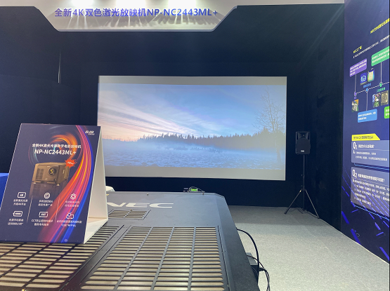 NP-NC2443ML+激光放映機是NEC為中大型影廳量身定製的實力之作,堪稱行業同級別產品中的“王炸”,不僅光源平均壽命長達50000小時,還有着24000流明的亮度表現,畫質持久穩定,無需搭配消散斑銀幕便可帶來絕佳的畫質效果,匹配4K超高清分辨率、豐富的色域還原能力,在現場帶來了分毫畢現的細膩畫面質感,參展觀眾讚不絕口。