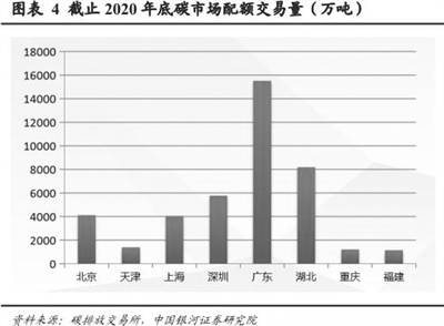自2011年以來,我國已經陸續在七個省市開展了碳排放權交易的先行試點。生態環境部數據顯示,截至今年3月,試點階段的碳市場共覆蓋20多個行業、近3000家重點排放企業,累計覆蓋4.4億噸碳排放量,累計成交金額約104.7億元。