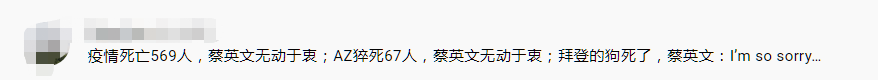 “疫情死亡569人,蔡英文無動於衷;AZ猝死67人,蔡英文無動於衷;拜登的狗死了,蔡英文:I’m so sorry…”