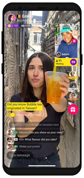 用户可以通過 Ablo 虛擬周遊世界各地,從源頭瞭解那裏的情況。在 Ablo 上進行的直播不是一種單向對話。在現場導遊解説過程中,觀眾可以加入直播,並向主播提問。這樣可以營造出一種超現實氛圍,觀眾彷彿置身於現場導遊所在的地點。Ablo 還消除了所有語言障礙,因為它可以在各個功能中即時翻譯對話。