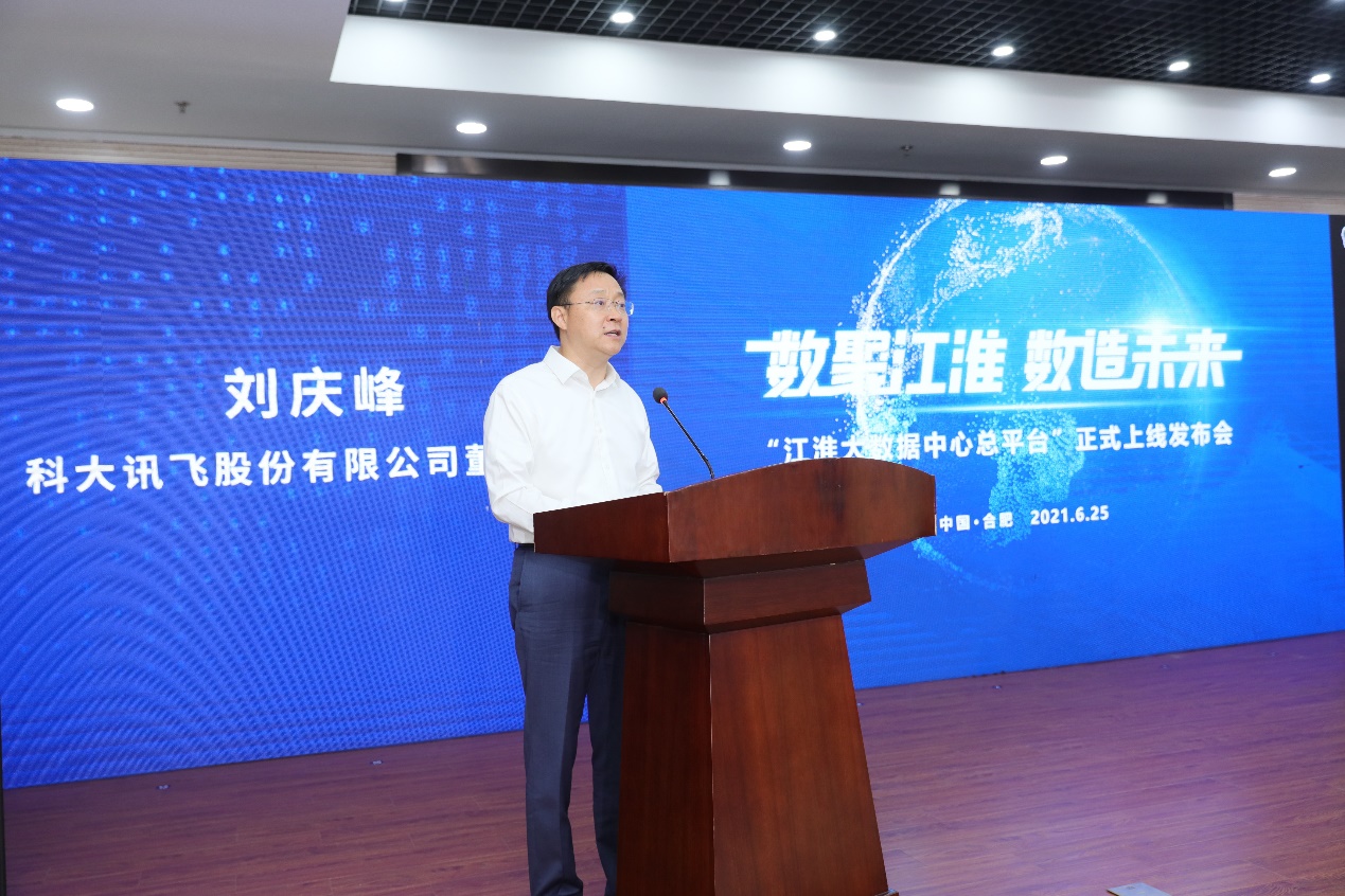 “江淮大數據中心總平台將構建起覆蓋全省、統一接入、互聯互通的數據共享樞紐,為全省數據利用提供堅強保證,為推動全省數字化轉型、助力高質量發展提供強有力的數據支撐。”作為項目承建方,科大訊飛董事長劉慶峯出席發佈會並致辭。