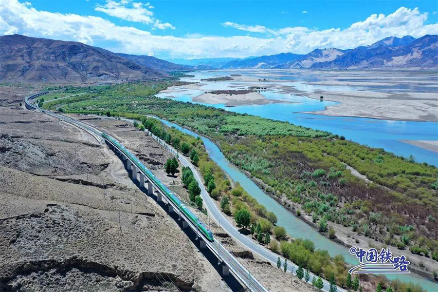6月25日10時30分,D2021次復興號列車鳴響風笛,從拉薩首發,駛向林芝標誌着拉林鐵路正式開通運營。