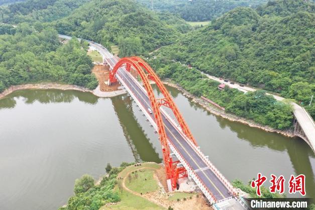 中新網貴陽6月29日電(石小杰 楊美美)29日,貴州首座“提籃”式公路橋樑花魚洞大橋正式竣工通車。