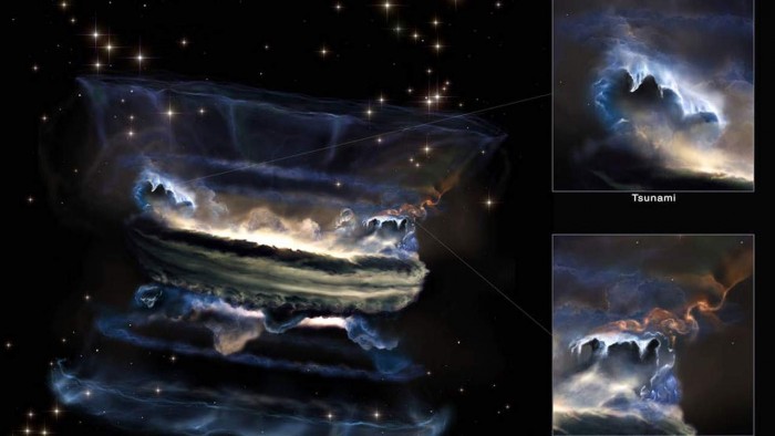 我們都知道什麼是海嘯。在地球上,它們通常發生在水下地震或火山爆發導致海水移位,從而引發巨大的海浪,在陸地上造成破壞並導致死亡。天體物理學家最近使用計算機模擬顯示,超大質量黑洞可以創造類似海嘯的結構,在深空形成巨大的規模。
