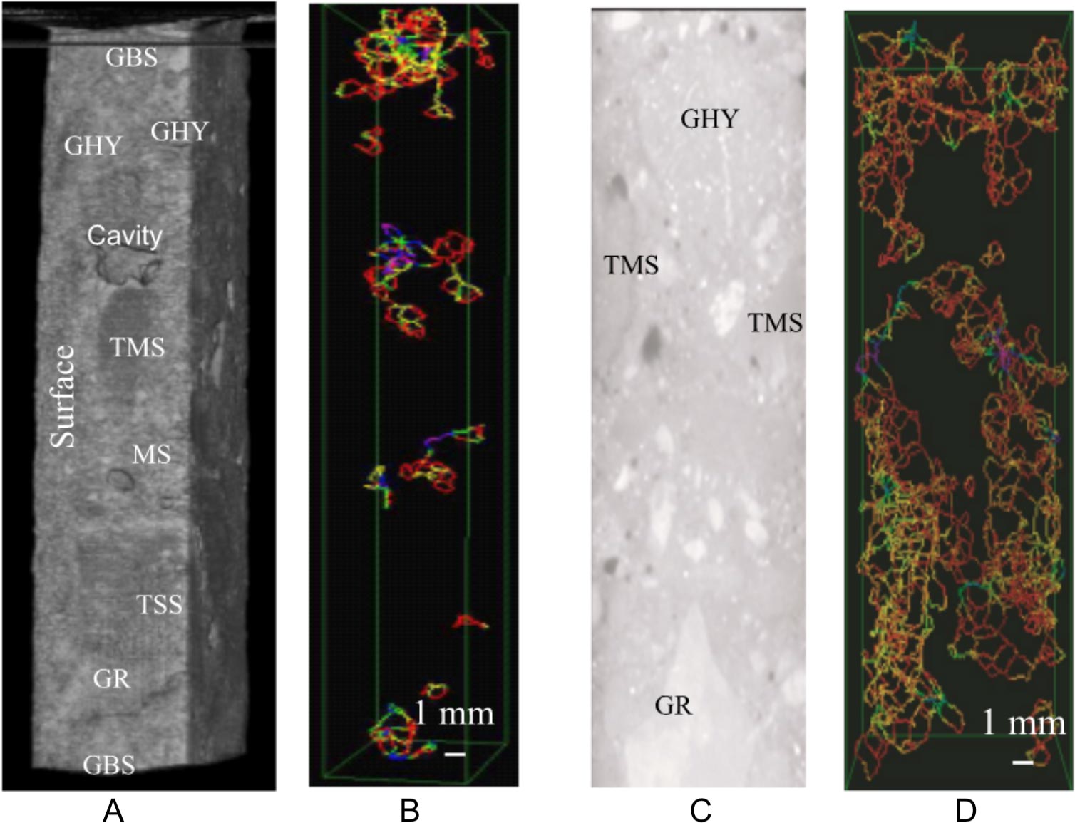 科學家們開發了一維暫態水分滲透裝置以精確重現混凝土結構和瀝青路面在實驗室24小時內暴露的現場環境條件。當跟CT掃描相結合時,該方法可用於評估損傷的精確程度。科學家們測試了自1960年以來來自日本的各種瀝青樣品,另外他們還測試了來自世界各地的一些混凝土樣本並使用了一個120年曆史的混凝土樣本作為參考。