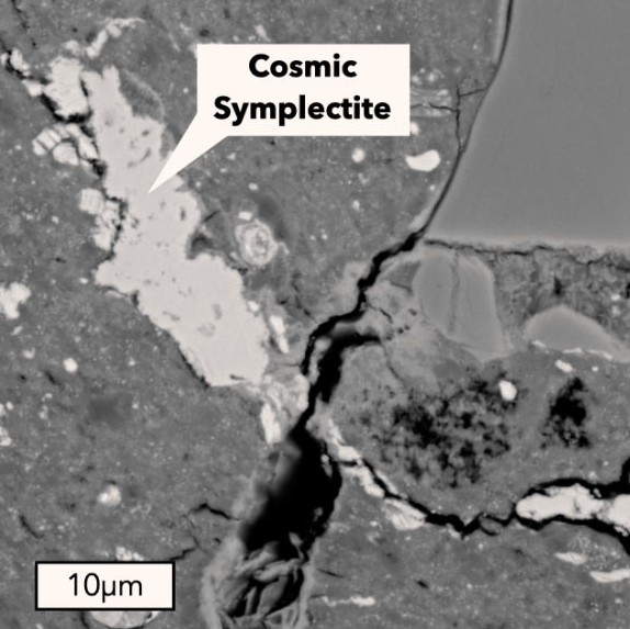 Acfer 094也是唯一含有宇宙後成合晶的隕石,這是一種具有極重氧同位素的氧化鐵和硫化鐵的互生體--這是一個重要的發現。