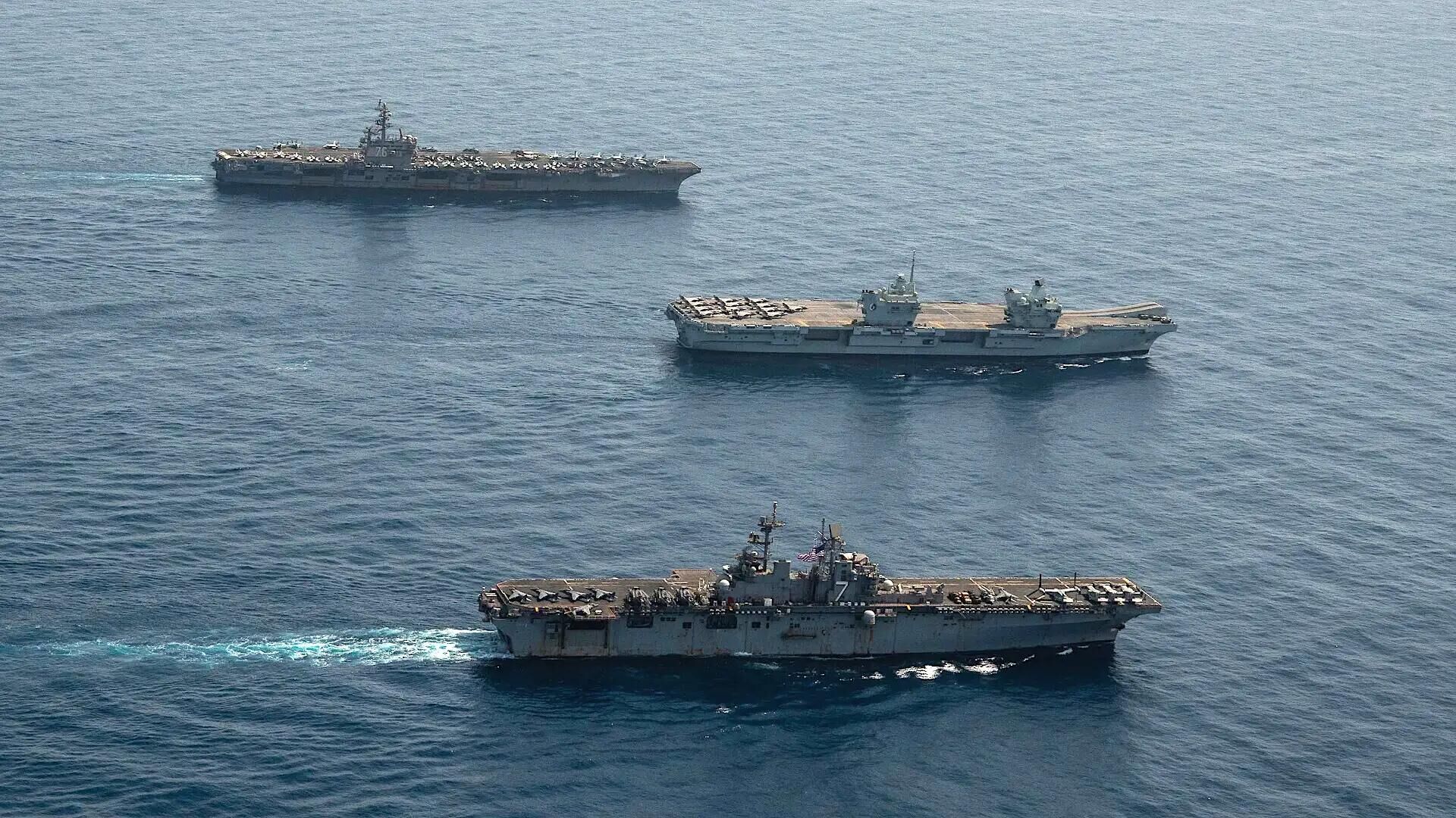報道稱,英國皇家海軍的“伊麗莎白女王”號航母與美國海軍的“里根”號航母、“硫磺島”號兩棲攻擊艦(又被稱為準航母)以及其他船艇在亞丁灣舉行了大規模的海上軍事演習。這是英美兩國海軍力量在這一海域的重要展示,該海域是一處具有重要戰略意義的海上十字路口。美國海軍的兩艘驅逐艦、一艘巡洋艦以及荷蘭海軍的一艘護衞艦也參加了演習。