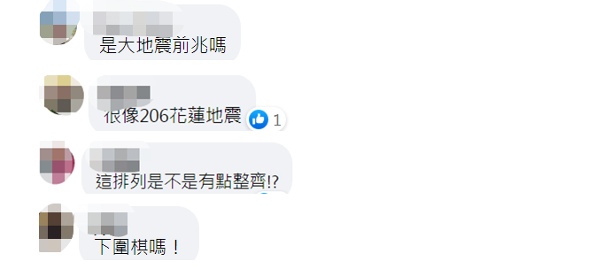 不過照片引發網友熱烈討論,網友意外發現密集地震的位置剛好整齊排列成“棋盤格”,每次地震震央都成了排列方正、整理有序的點,方正整齊的排列令人擔心,有網友稱:“很像’26花蓮地震’”,有網友問:“這排列是不是有點整齊?”還有網友擔憂:“這是大地震前兆嗎?”↓