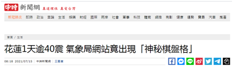 台灣多家媒體關注到了鄭明典發的這張“神秘”的圖片,報道稱,一天42震讓許多花蓮人相當憂心,因為2016年在“26大地震”時,也有類似的羣震發生。