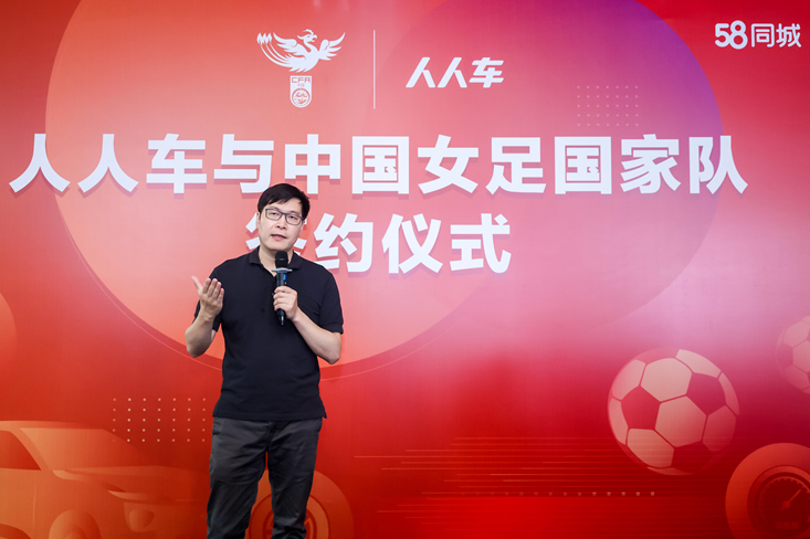 58同城CEO姚勁波、人人車創始人李健、中國足球協會紀委書記及執委閆佔河、中國足球協會女子足球部部長鄭超勇、前中國國家女子足球隊隊員温麗蓉等嘉賓出席簽約儀式並發表主題演講。