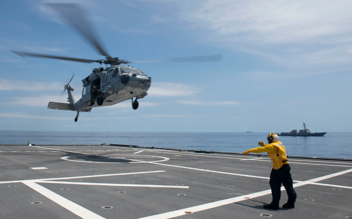 根據美國太平洋艦隊發佈的消息,美國海軍“塔爾薩”號瀕海戰鬥艦曾於7月9日在南海與“基德”號驅逐艦開展聯合演練,演練了艦載直升機起降等項目。“查爾斯頓”號瀕海戰鬥艦則於7月11日在南海進行實彈射擊演練,使用57毫米口徑艦炮對海面目標進行射擊。7月12日,“查爾斯頓”號瀕海戰鬥艦進行了艦載無人機的維護作業,將其搭載的 MQ-8B“火力偵察兵”無人直升機轉移到飛行甲板進行維護;同一天“查爾斯頓”號還進行了人員落水演習,艦員將假人投入海中,模擬有人落水的情況,然後實施營救;7月13日,“查爾斯頓”號瀕海戰鬥艦又在南海進行了補給作業,美國海軍“T-AO 199”號補給艦為其進行了橫向補給。