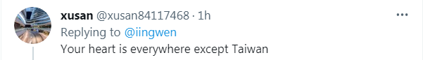 也有網友諷刺説,“除了台灣,你的心無處不在。”↓