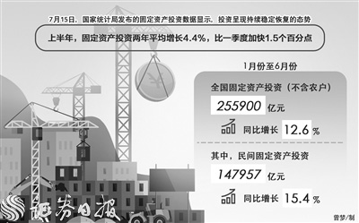 7月15日,國家統計局發佈的固定資產投資數據顯示,投資呈現了持續穩定恢復的態勢。上半年,固定資產投資兩年平均增長4.4%,比一季度加快1.5個百分點,總體在加快。
