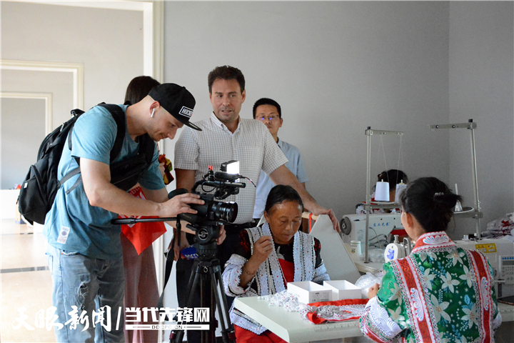 月9日,“海外媒體行”記者團來到黔西市新仁苗族鄉化屋村易地扶貧搬遷安置點扶貧車間。盧達極 攝