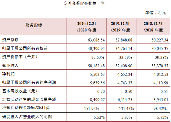 從財務報表來看,公司業績最近幾年持續穩定增長。2018-2020年,金百澤分別實現營業收入5.34億元、5.24億元和5.82億元,分別實現歸屬於母公司所有者的淨利潤4110萬元、4743萬元和5639萬元。