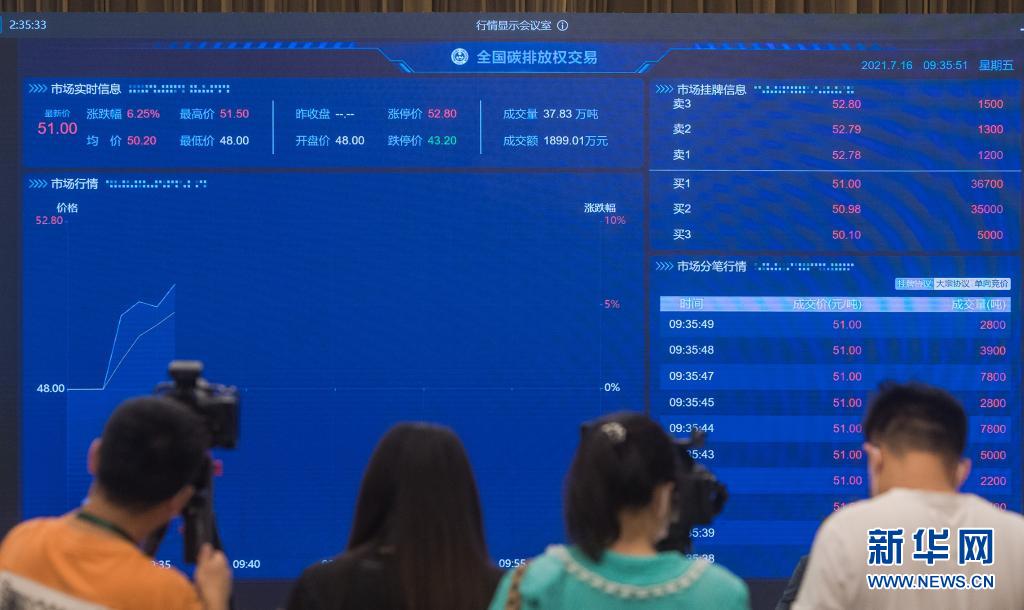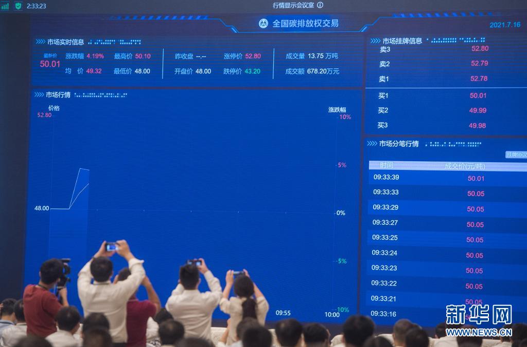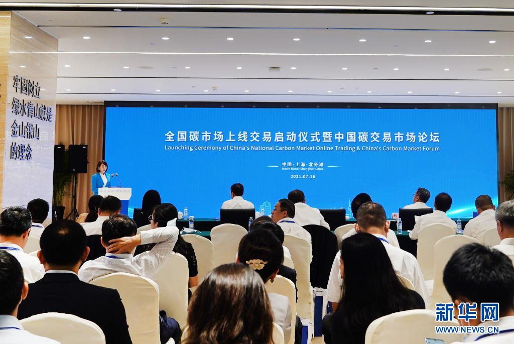7月16日,全國碳市場上線交易啓動儀式暨中國碳交易市場論壇在上海環境能源交易所舉行。新華社記者 程思琪 攝