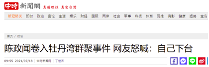 熟知內情人士透露,當天陳政聞與南部政商一同前往牡丹灣,因民眾投訴且被媒體詢問,當晚“行政院”高層便直接要求陳政聞立即離開現場,且放話“如果名字見報,立刻下台”。據瞭解,陳政聞也已向高雄市長陳其邁及“行政院院長”蘇貞昌方面主動告知此事,高雄政壇人士紛紛揣測“這次應該走定了”。