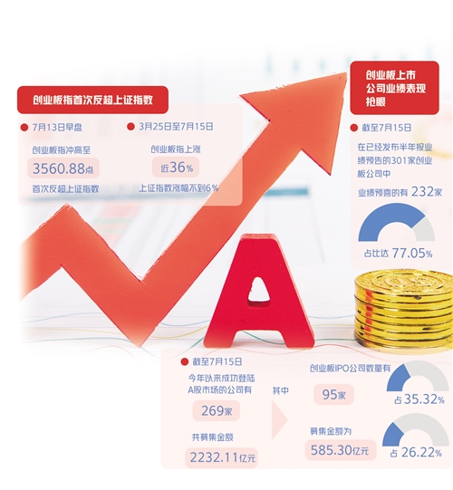 創業板指自今年3月25日觸底以來,一路震盪上行,截至7月15日,上漲近36%,而同期上證指數的漲幅還不到6%。