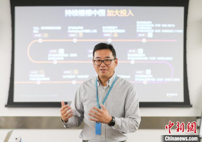 亞馬遜雲科技中國商業事業部總經理李曉芒介紹服貿會參會的籌備情況。 中新社記者 賈天勇 攝