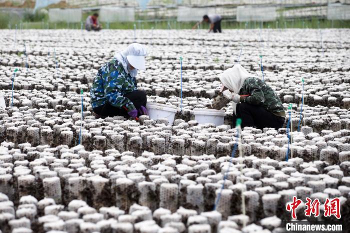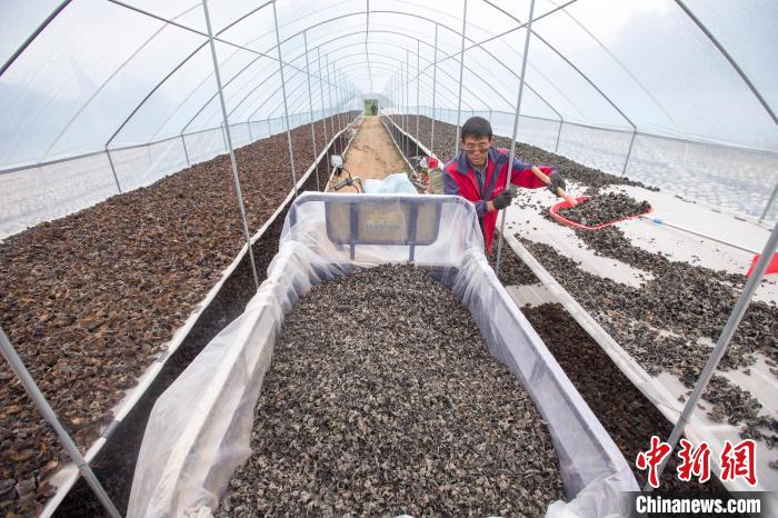黑木耳種植基地內,一片忙碌。 張雲 攝