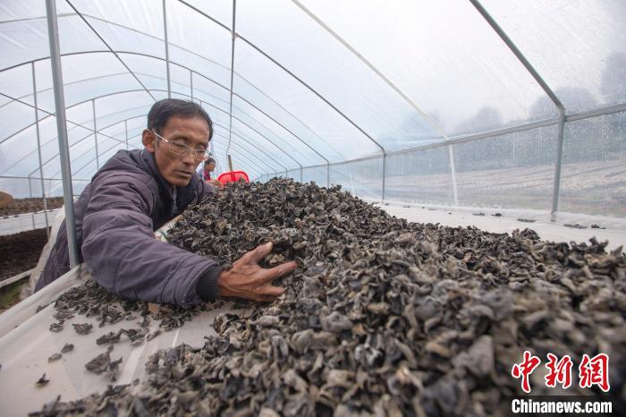 在採訪中,今年65歲的楊巧蘭和數十位村民正在陳永宏的木耳種植基地採摘木耳。楊巧蘭告訴記者,“我們採摘木耳一天能掙120塊錢。”