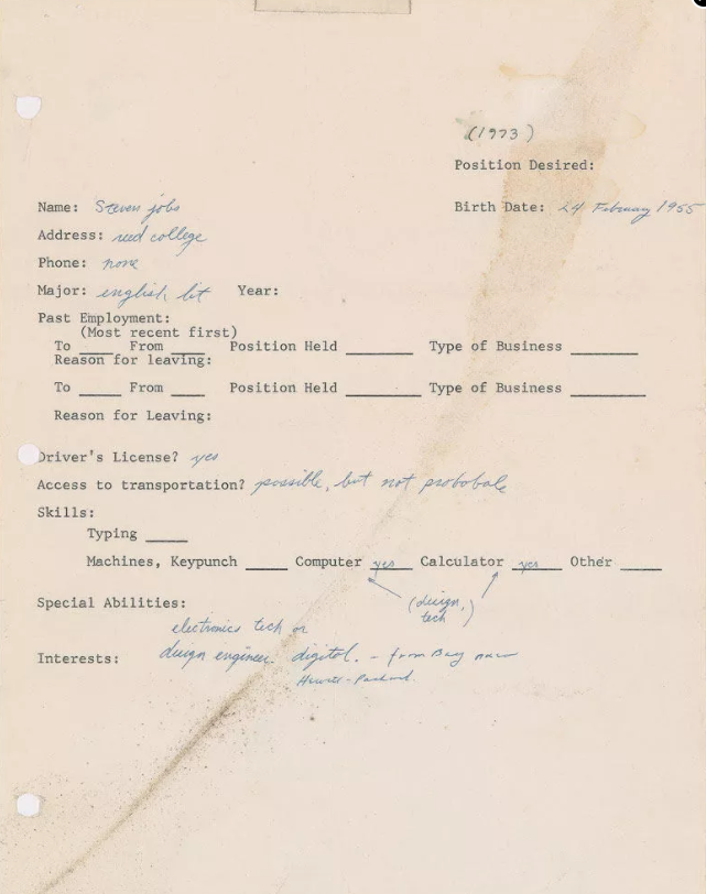 【環球網科技綜合報道】據外媒7月22日最新消息,蘋果前首席執行官史蒂夫·喬布斯在 1973 年填寫的一份求職申請書日前將進行再次拍賣。