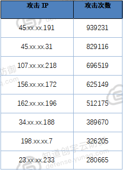 表1 攻擊IPv4 TOP 50(所有IP均來自於美國):