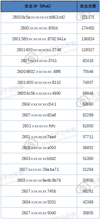 表2 攻擊IPv6 TOP 20(所有IP均來自於美國):