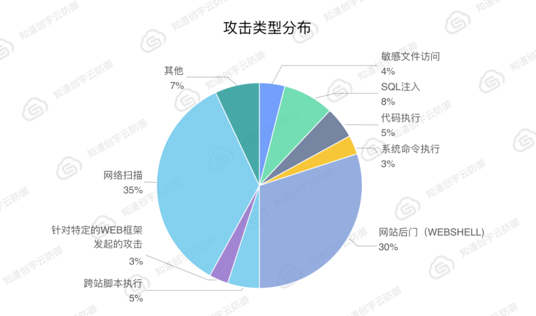 從重大活動、節假日期間的攻擊量上可以直觀地看出,美國對中國的攻擊是有目的、有針對性的。從攻擊類型分佈看,也更加印證了這一點。