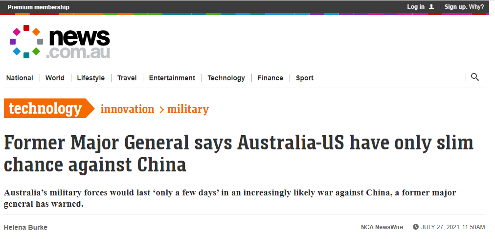 美澳與中國開戰會怎樣?澳大利亞前少將:美國很可能會輸,而澳軍只能自謀生路