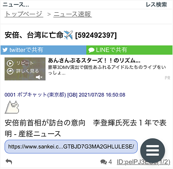 日本網友建立“安倍,亡命台灣”的帖子截圖
