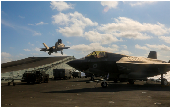報道稱,英國“伊麗莎白女王”號航母正在開展首次全球部署行動,與其隨行的還有一艘45型驅逐艦“衞士”號、兩艘23型護衞艦“諾森伯蘭”號和“肯特”號,一艘機敏級核潛艇以及兩艘英國皇家海軍的輔助艦船,此外英國航母編隊裏還包括一艘美國海軍驅逐艦和一艘荷蘭護衞艦。而部署在“伊麗莎白女王”號航母上的有8架英國皇家空軍的F-35B戰鬥機和10架美國海軍陸戰隊第211攻擊戰鬥中隊的F-35B戰鬥機。