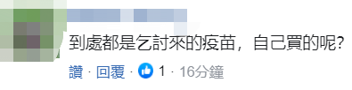 也有網友痛批,“到處都是乞討來的疫苗,自己買的呢?”↓
