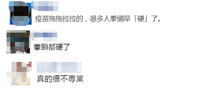有網友用諧音梗諷刺陳時中採購疫苗拖拖拉拉的,很多人拳頭早“硬”了。↓