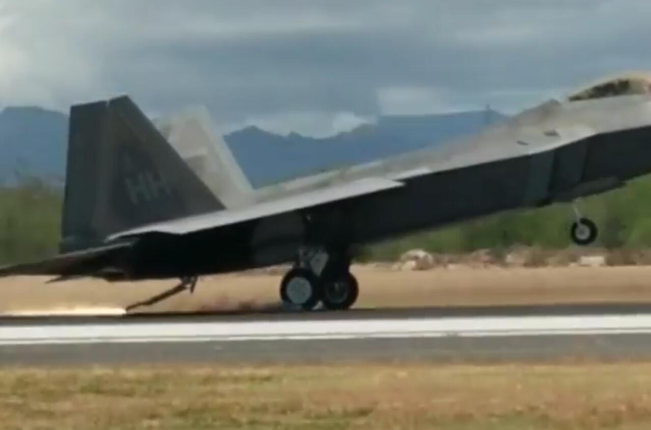 美軍一架F-22戰鬥機空中突發緊急情況,罕見放下尾鈎攔阻迫降