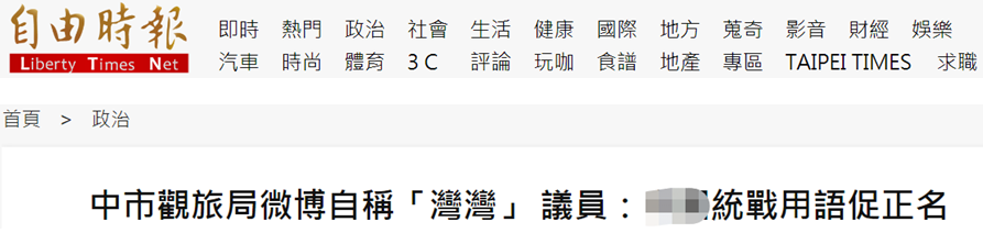 台灣《自由時報》稱,台中市觀旅局官方微博賬號自稱的“灣灣”到底是誰?林德宇、何敏誠12日在“議會”質詢中,現場詢問有沒有人知道“灣灣”是誰,結果無人回應。
