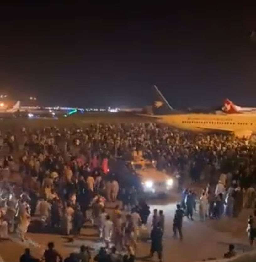 報道稱,哈米德·卡爾扎伊國際機場已經成為阿富汗首都內一個被外國控制的“孤島”,阿富汗首都喀布爾實際上已經完全處於塔利班的控制之下。在這段於社交媒體上曝光的視頻中,一開始就能聽到一陣自動武器射擊的聲音,緊接着是美軍士兵用英語大喊“後退”。如果有人在飛機活動區域內或是沿着飛機活動區域來回走動將是非常危險的,這可能會逼停飛機甚至造成飛機損壞。而更早時候的視頻顯示,大量平民在機場的地面上閒逛。