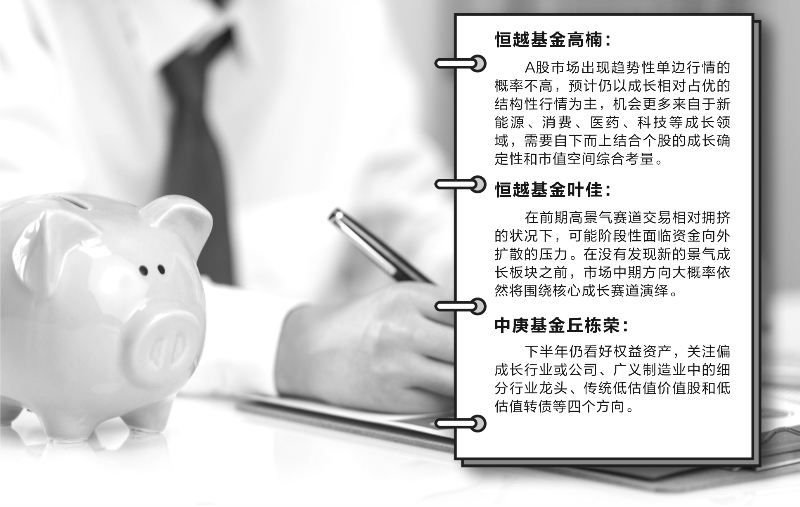 展望後市,葉佳在半年報中表示,在前期高景氣賽道交易相對擁擠的狀況下,可能階段性面臨資金向外擴散的壓力。在沒有發現新的景氣成長板塊之前,市場中期方向大概率依然將圍繞核心成長賽道演繹。