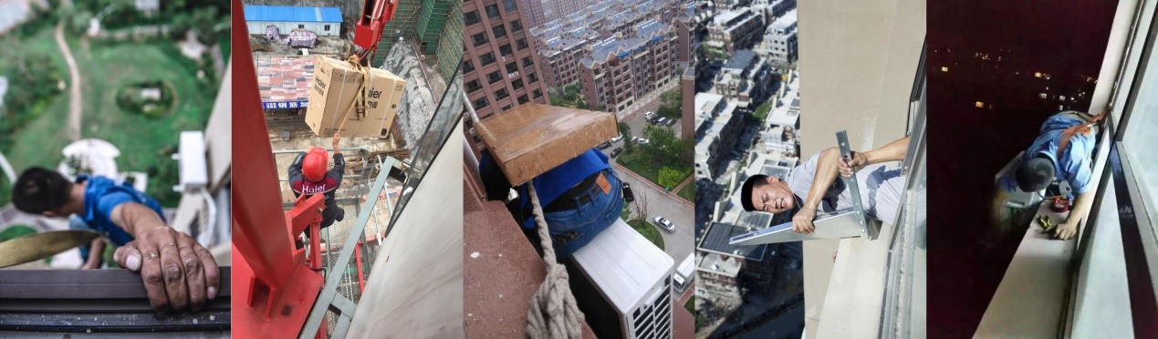 安裝條件苛刻,大大增加了師傅們作業時的危險性。有一次為安裝空調,徐長臣執行吊板作業,又徒手拎着近百斤的外機。“當時高層風力挺大的,回家後才發現,胳膊上都被翅片劃出了深深的血印。” 徐長臣説。