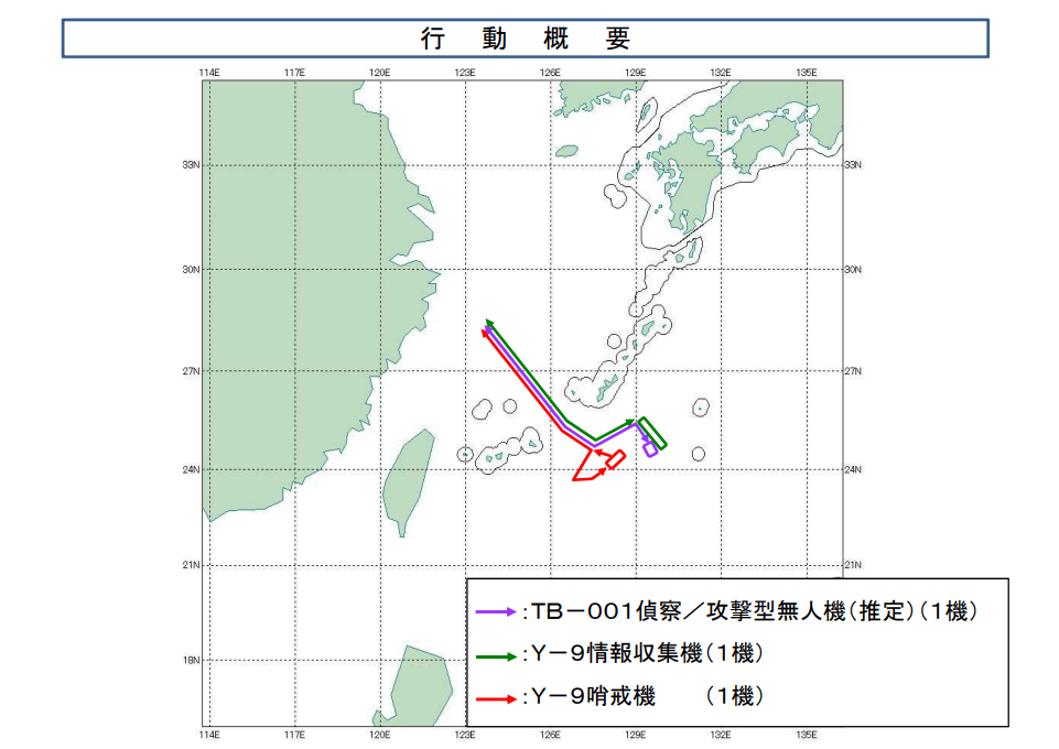 日本防衞省統合幕僚監部8月26日發佈消息稱,日本自衞隊當天發現3架中國飛機在東海-太平洋海域上空飛行,3架飛機分別為一架運-9電子偵察機、一架運-9反潛巡邏機,還有一架被推測為TB-001型的偵察/攻擊無人機。