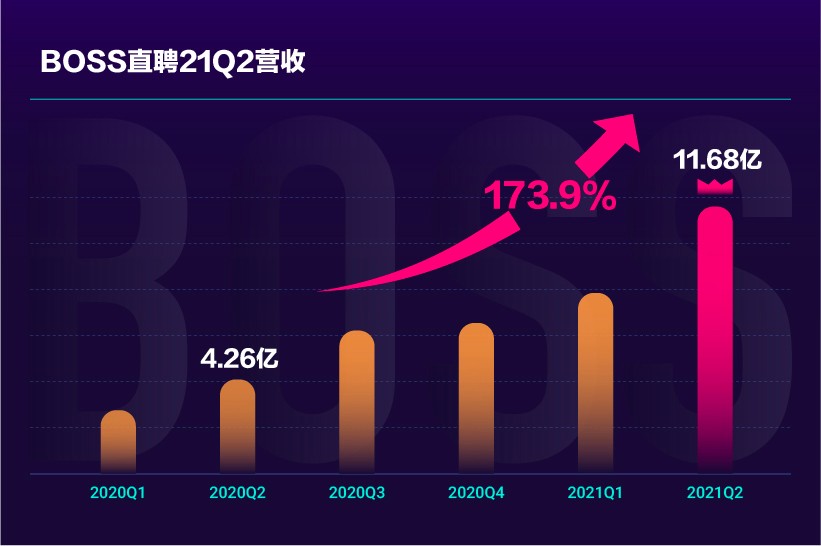 隨付費企業客户與KA企業客户的增長,BOSS直聘收入保持了健康的增長勢頭。2021年第二季度BOSS直聘收入達人民幣11.68億元,同比增長173.9%,創單季歷史新高,高於市場預期。經計算現金收款14.44億元,同比上漲175.3%。