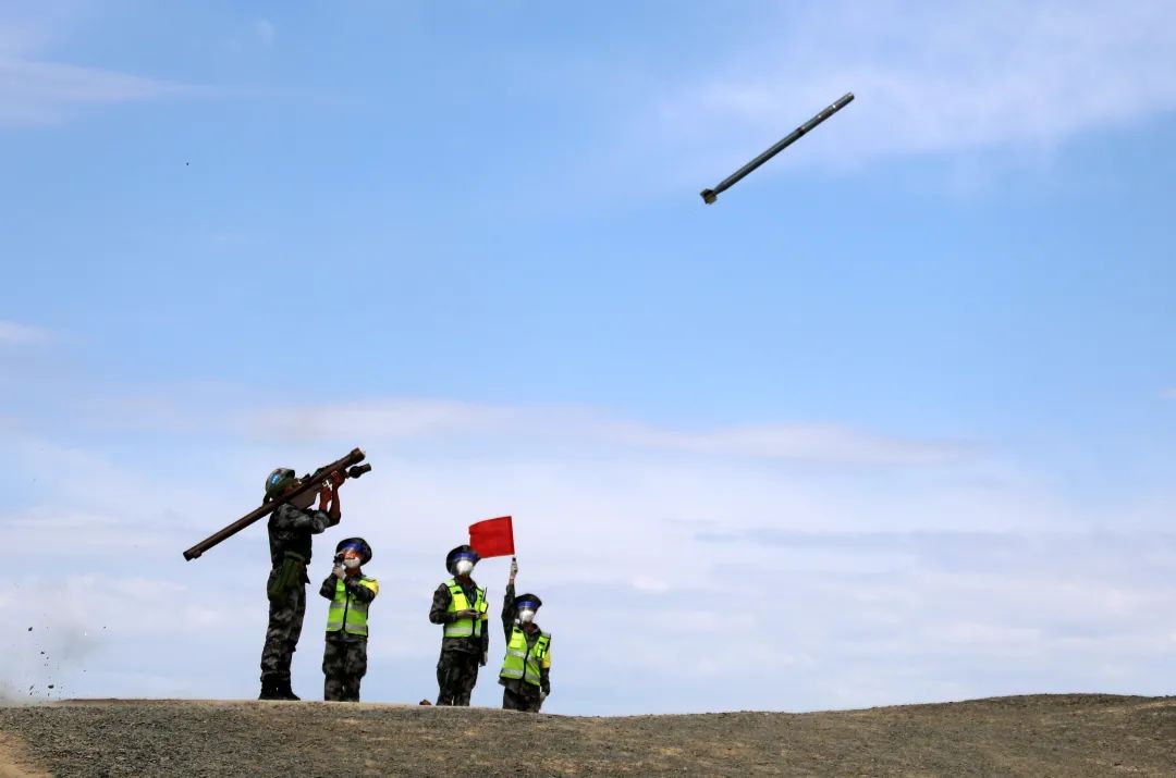 8月28日,“國際軍事比賽-2021”中國庫爾勒賽區“晴空”項目多能賽在庫爾勒開賽,中國隊導彈射手向尾追目標射擊。張嘉成 攝