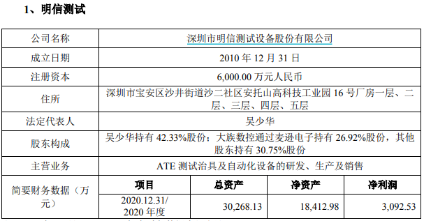 根據招股書披露,大族數控的全資子公司麥遜電子於2018年2月將其持有深圳市明信測試設備股份有限公司的11%股權進行轉讓,明信測試自2018年2月起不再納入合併報表範圍,因此招股書2019年合併報表中不再包含參股公司。目前,麥遜電子僅持有明信測試26.92%的股權。