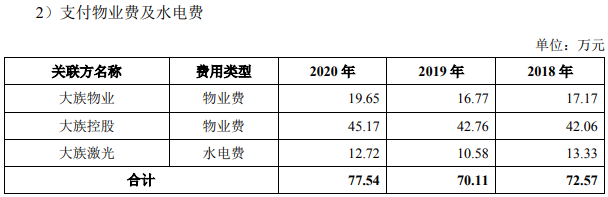 此外,根據招股書第144頁披露的關聯交易信息,大族數控涉及到水電費類關聯交易,對手方僅涉及大族激光一家。但與此同時,大族激光在發佈的2020年年報第225頁披露的“其他關聯交易”中提到:“2020年度,本公司控股子公司深圳市大族數控科技股份有公司(以下簡稱“大族數控”)代收代付深圳市明信測試設備股份有限公司(以下簡稱“明信測試”)水電費金額為1083636.00元;明信測試2020年代收代付大族數控水電費金額為10725.41 元。”