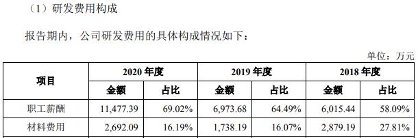 2018年324人的研發人員對應6015.44萬元人力成本支出,人均人力成本不到20萬元;2020年395人的研發人員對應11477.39萬元人力成本支出,人均人力成本已高達近30萬元,增幅高達50%以上。